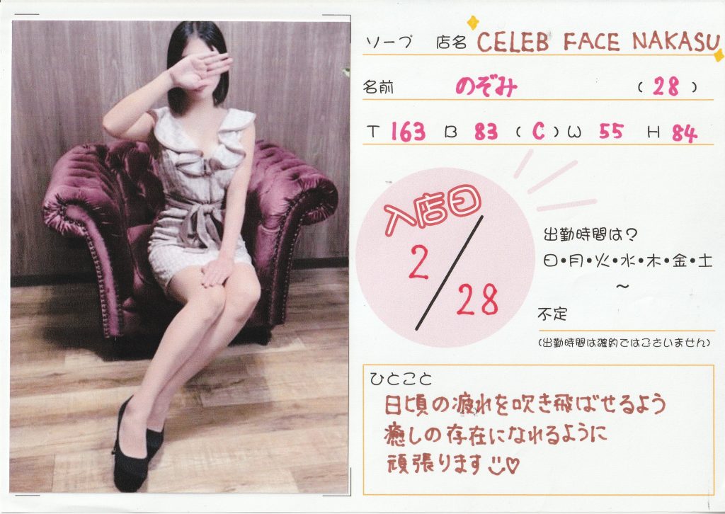 【2月28日入店】「セレブフェイス中洲」のぞみ