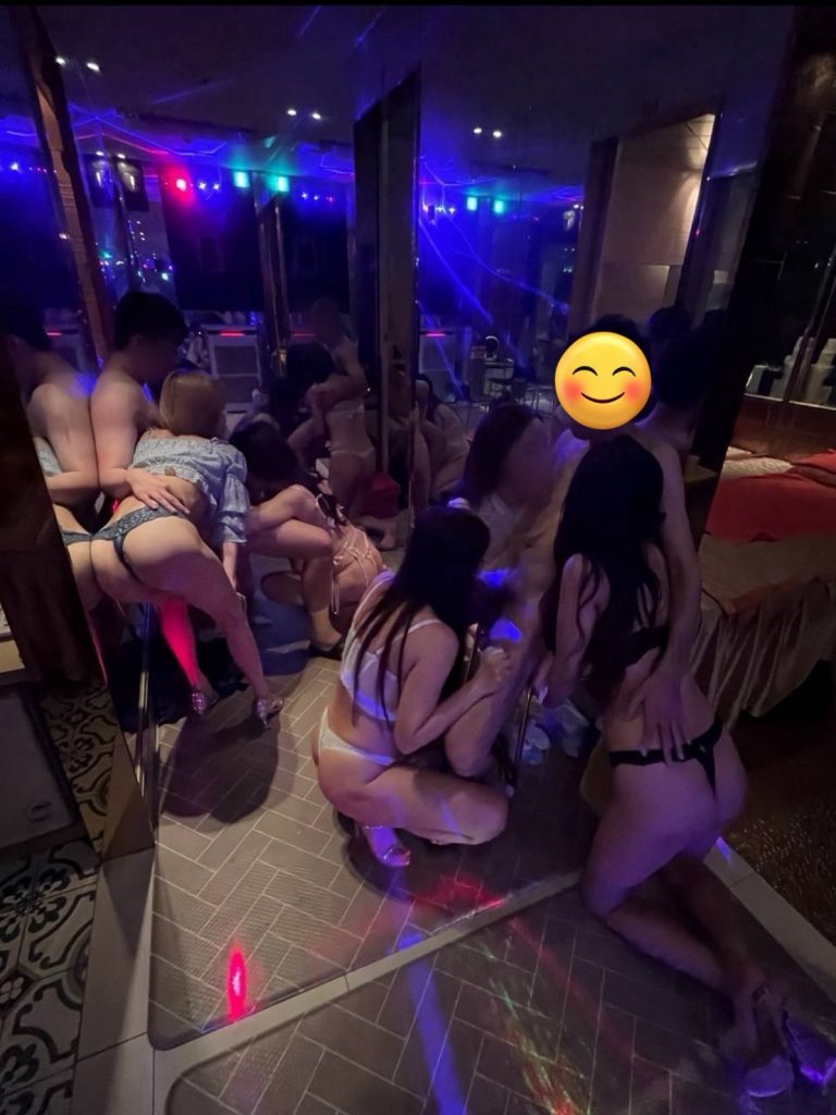 すでに多くのお客さんが、複数の女の子に責められてフィーバー状態だ。